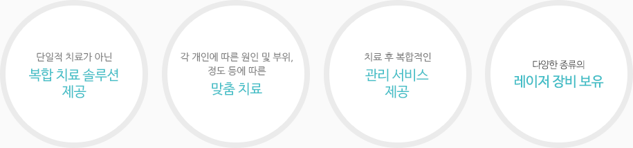 빛고을미에서는 환자 개개인의 피부상태를 형태별, 증상 별로 꼼꼼히 파악하고, 가장 적절한 치료 솔루션을 제시해 드립니다.