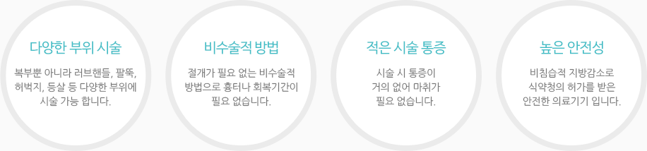 - 3.사멸된 지방세포는 몸 밖으로 배출되고 시술 후 3개월에 걸쳐 지방세포는 자연적으로 서서히 줄어들게 됩니다.