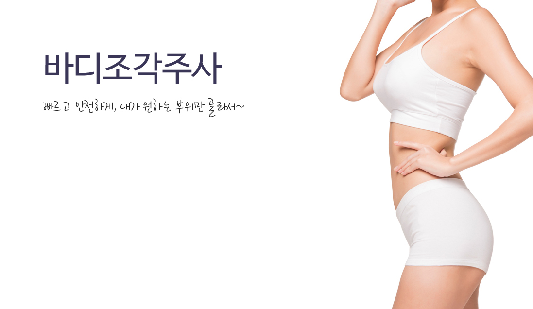 바디조각주사는 인체에 무해한 성분의 약물을 주입하여 몸 곳곳에 쌓여있는 불 필요한 지방을 녹이고, 말초 혈관 및 림프 순환을 촉진시켜 체내에 노폐물 배출을 도와줍니다. 운동으로 빼기 힘들었던 군살들을 수술 없이 정리할 수 있으며, 피부 탄력 증가에도 효과가 있어 빠르고 효과적인 지방제거가 가능합니다.
